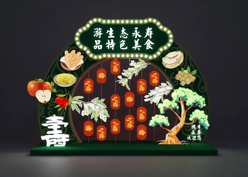 以永壽縣的壽字為設(shè)計(jì)元素,制作永壽獨(dú)有標(biāo)識(shí),凸顯商業(yè)的新藝術(shù)情趣。